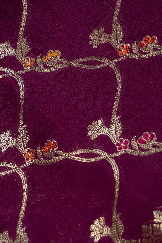 Red and Green Dhoop Chaav Banarasi Silk Saree with All-Over Floral Weaving, Plain Silk Facing, and Tassels on Pallu and Blouse