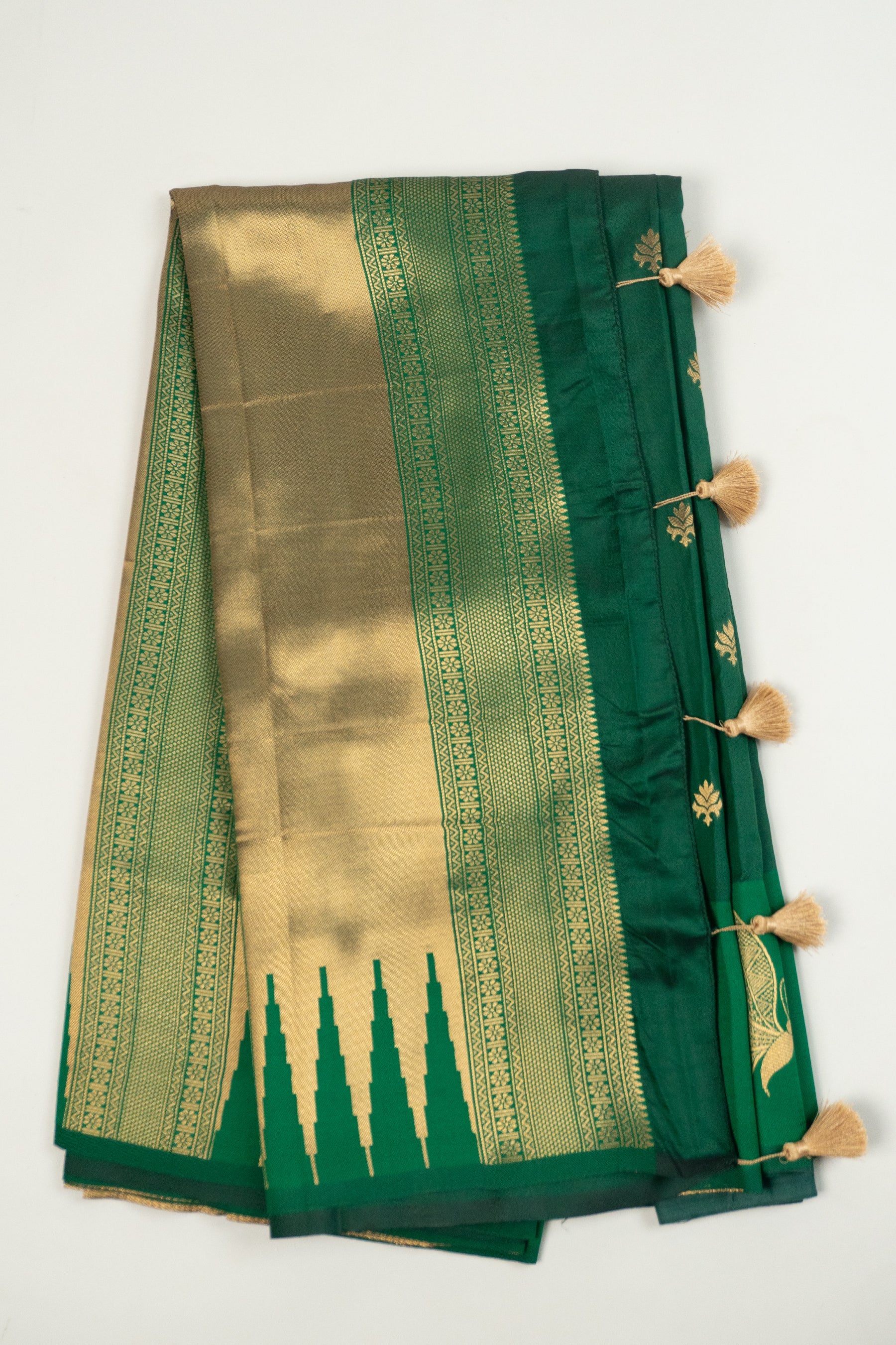 Colour Combination: A regal bottle green body paired with a striking red border, creating a bold and elegant contrast.