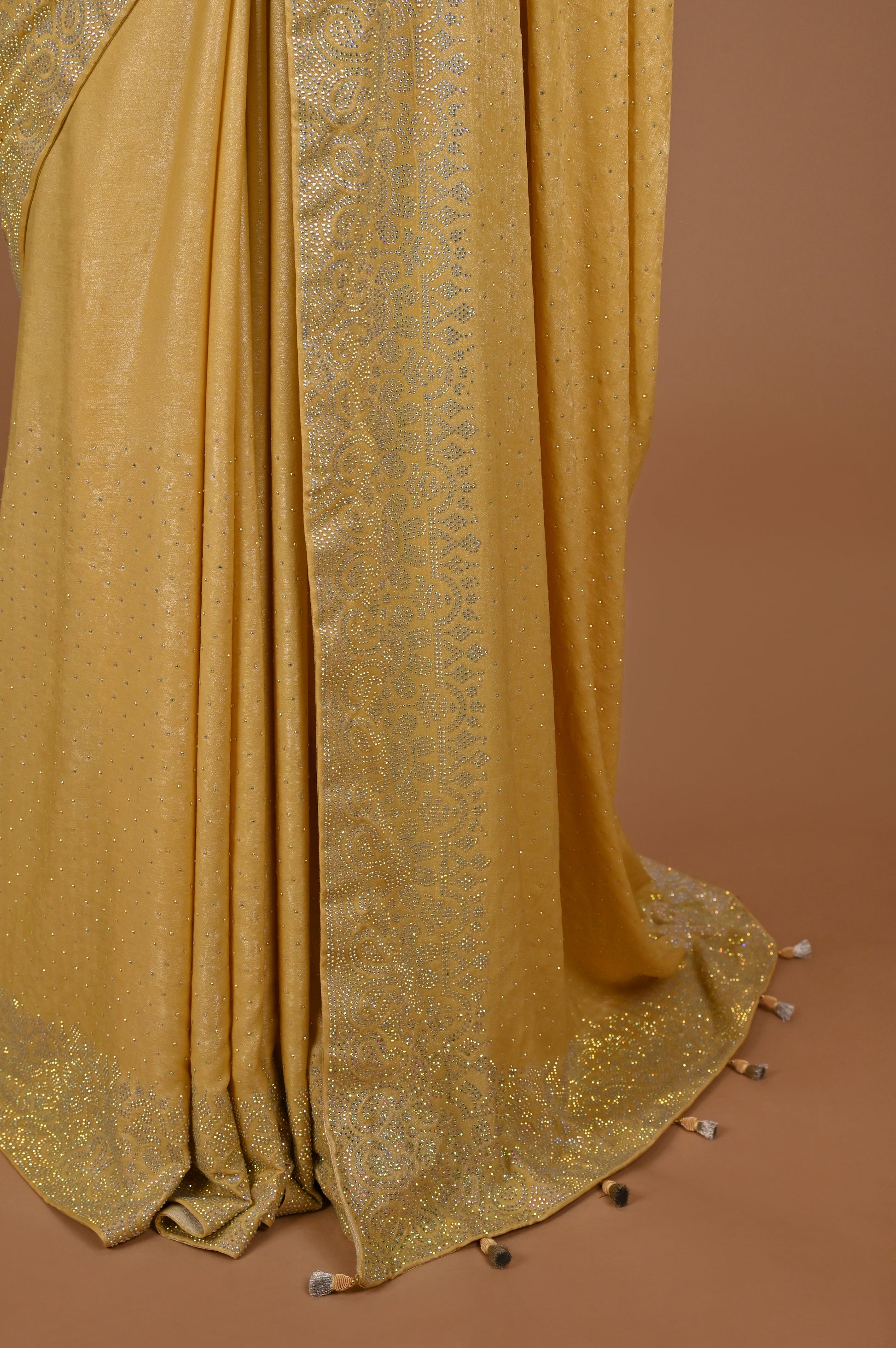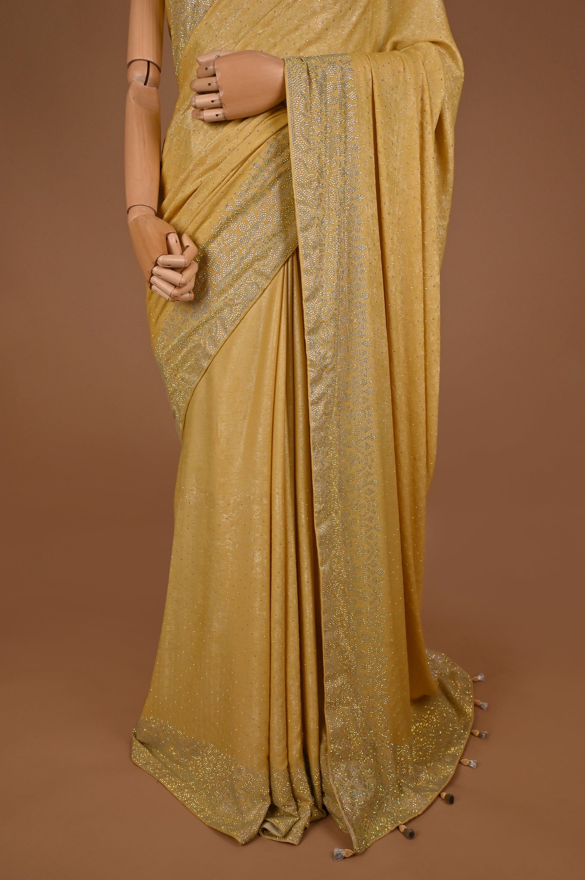 Lemon Yellow Shimmer Suede Satin Saree with Swarovski Highlights