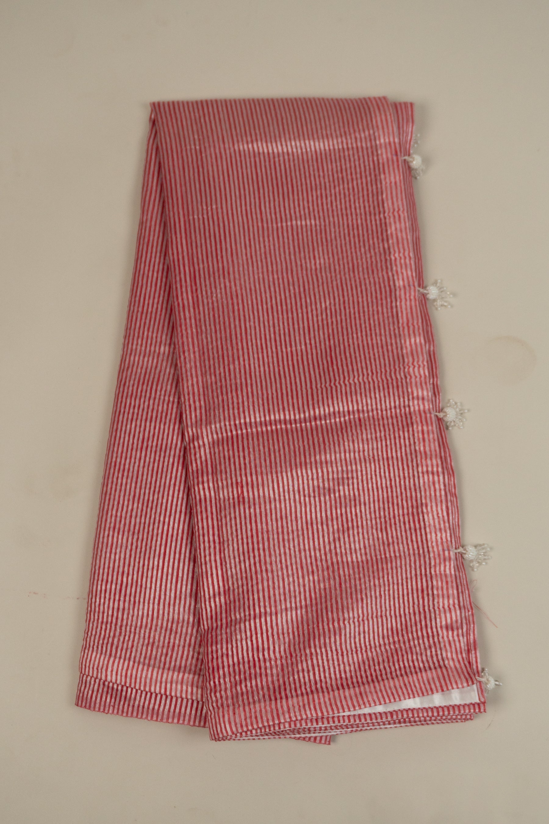 Pink and White Art Silk Saree with Satin Facing and White Katdana Tassels