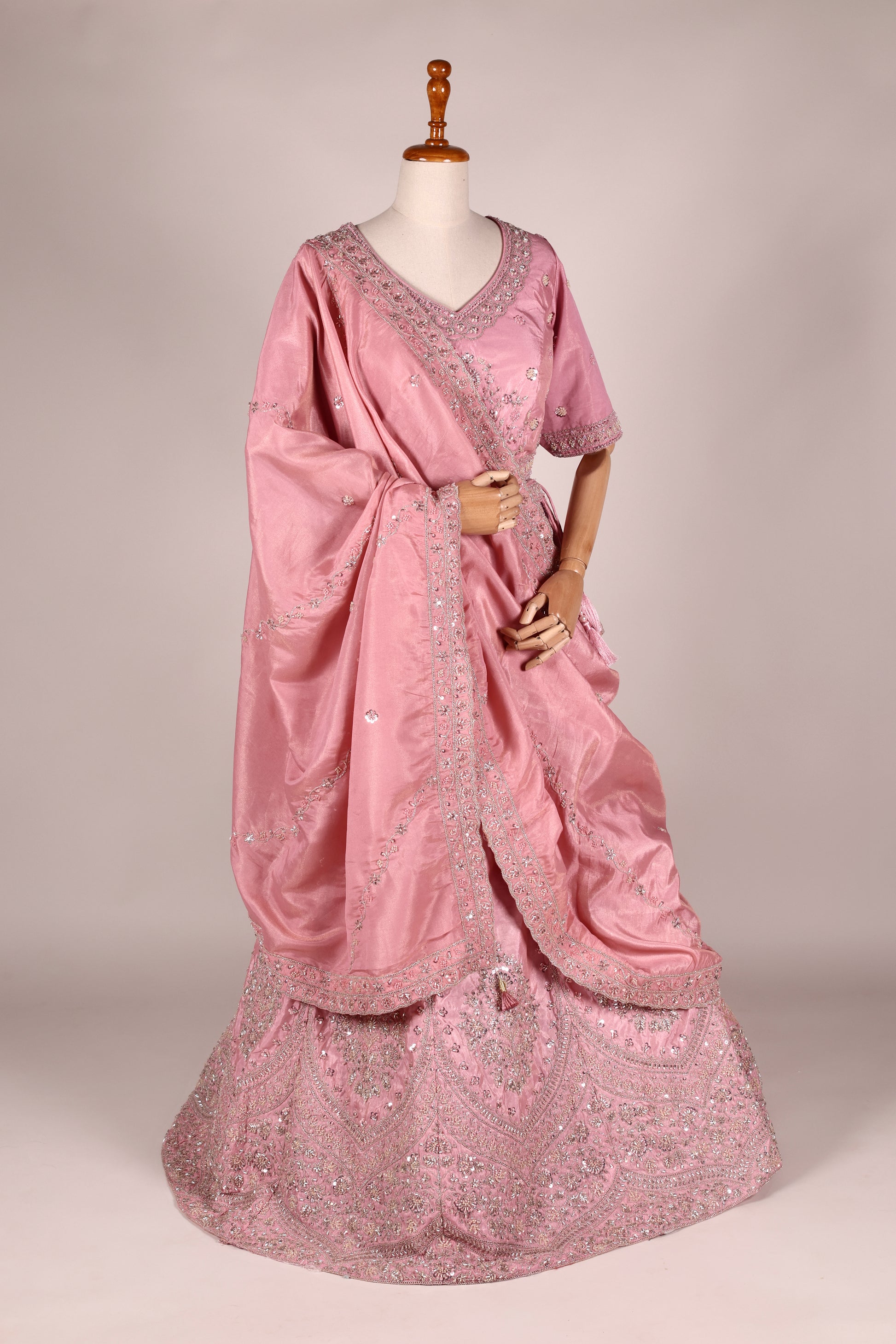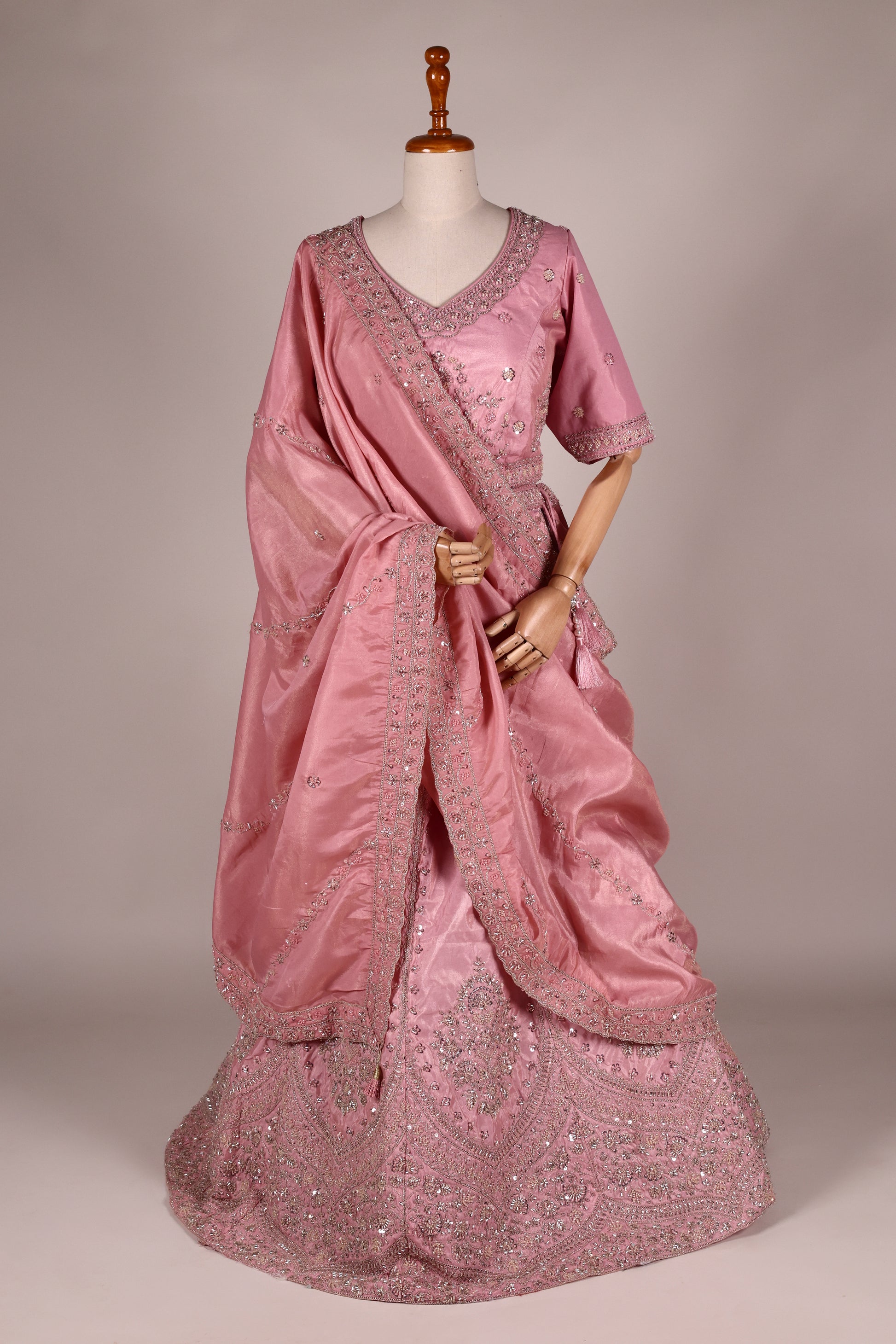 This pink chinon lehenga with crepe lining is a beautiful choice for elegant celebrations.