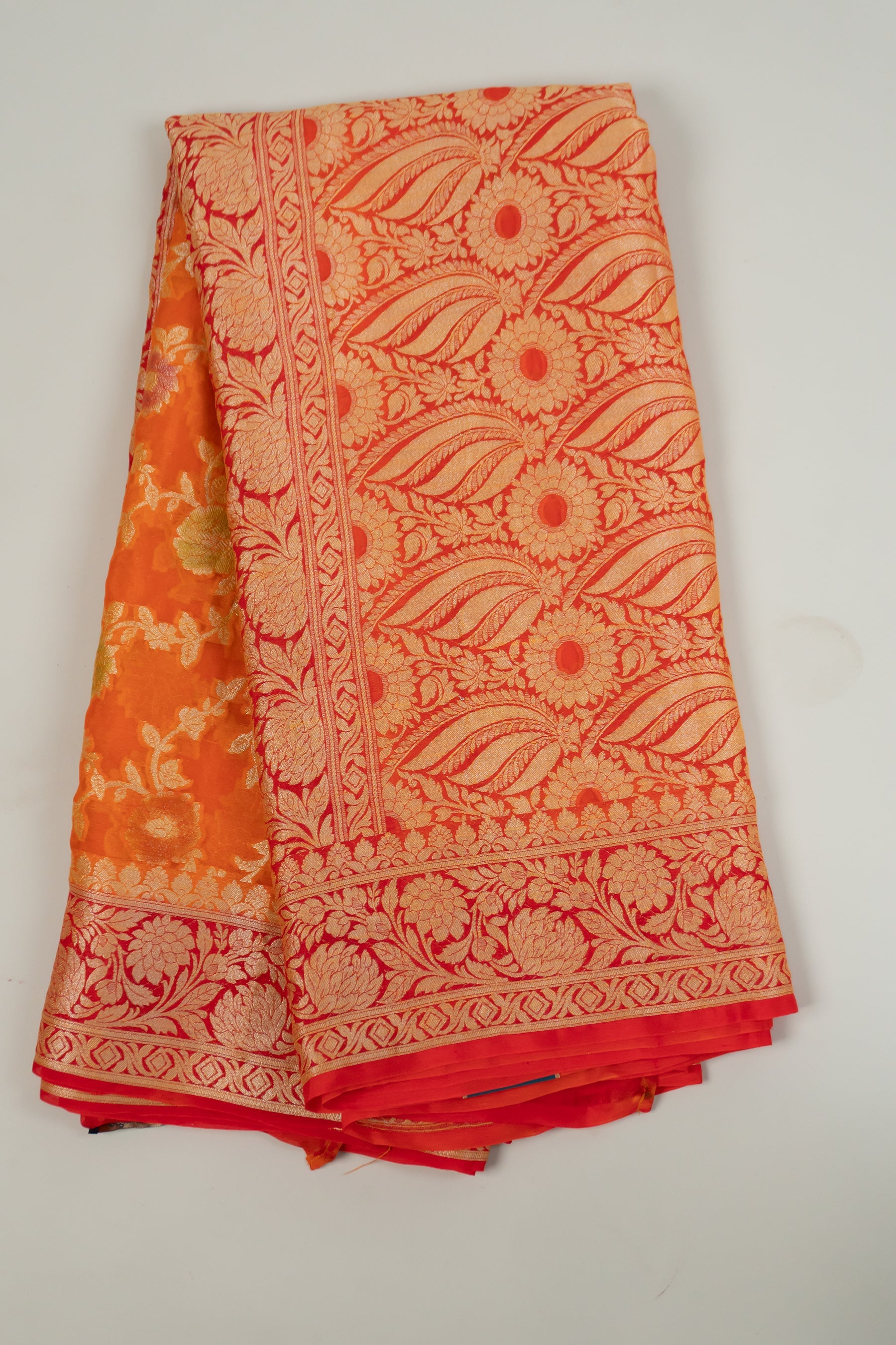 Vibrant Orange and Red Banarasi Silk Saree with Cotton Petticoat & Blouse Lining