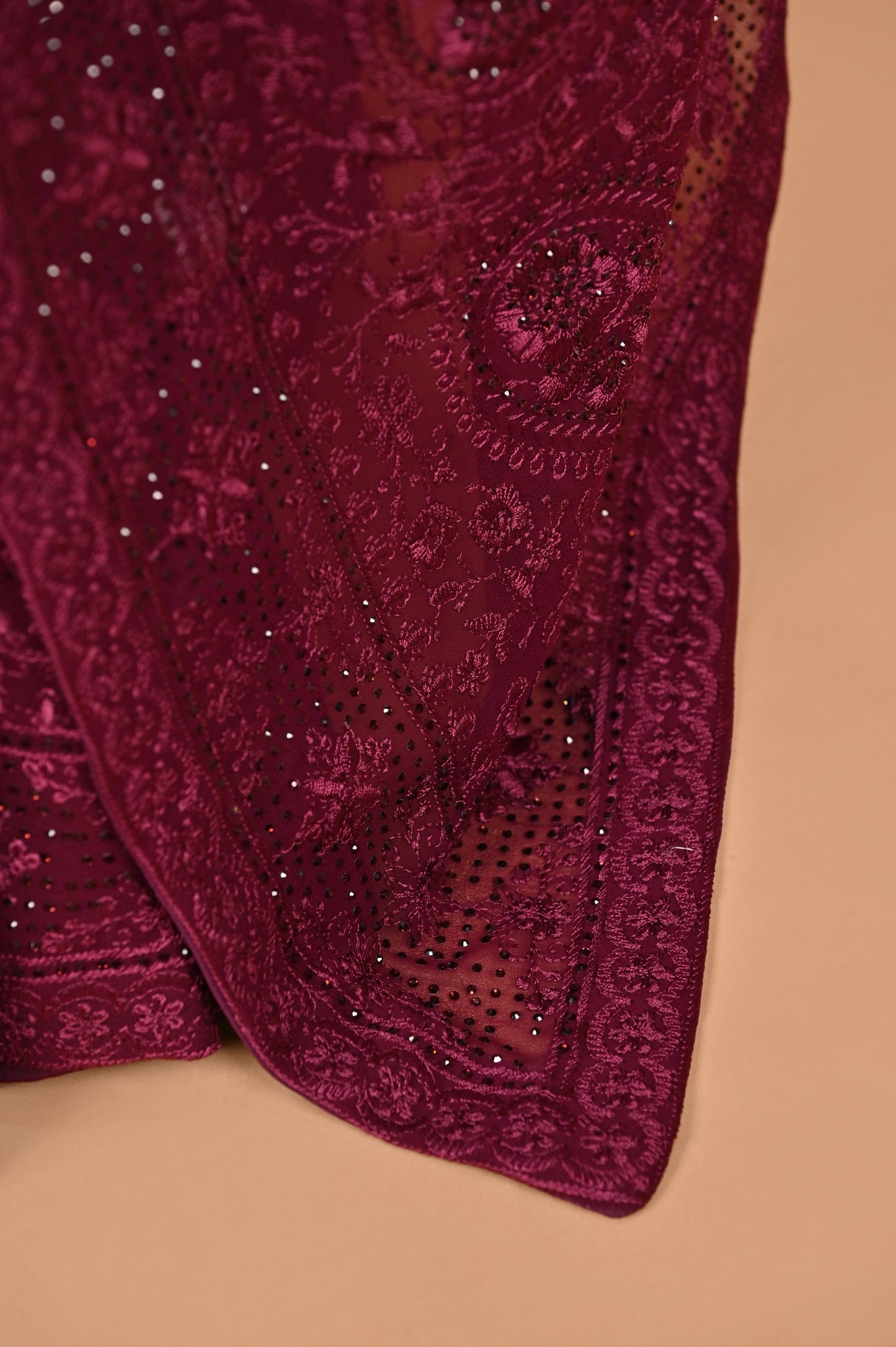Wine Georgette Saree with Kashmiri Embroidery